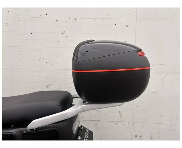 Den Elektroroller gibt es in vier trendigen Designs. Jeder Roller ist standardmäßig mit einem hochwertigen Aluminium Rack und einem Top-Case ausgestattet, das in der Fahrzeugfarbe lackiert ist.