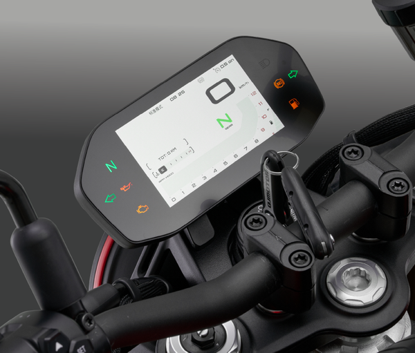 Die SRK 800 DARK bringt Features mit, die in dieser Klasse glänzen — für Fahrer, die Komfort und Technik gleichermaßen schätzen: Modernes TFT-Display: übersichtlich, farbig, mit allen wichtigen Infos — ideal für Alltag, Tour oder lange Fahrten. LED-Beleuchtung vorne und hinten für bestmögliche Sichtbarkeit und markanten Auftritt — Tagfahrlicht inklusive. Ride-by-Wire, moderne Einspritzung und fein abgestimmte Elektronik sorgen für gleichmässige Leistung und zuverlässige Fahrbarkeit — egal ob du sportlich unterwegs bist oder gemütlich cruist.