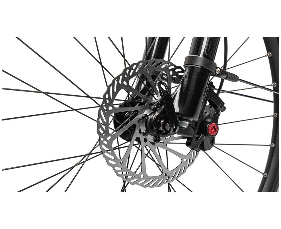 Die SUNTOUR Federgabel mit 100 mm Federweg an der Front gleicht Unebenheiten souverän aus und sorgt dafür, dass selbst rauer Untergrund oder Kanaldeckel Sie nicht vom Kurs abbringen – für komfortables, kontrolliertes Vorankommen bis zum Ziel.