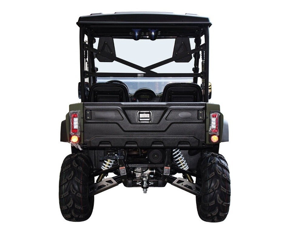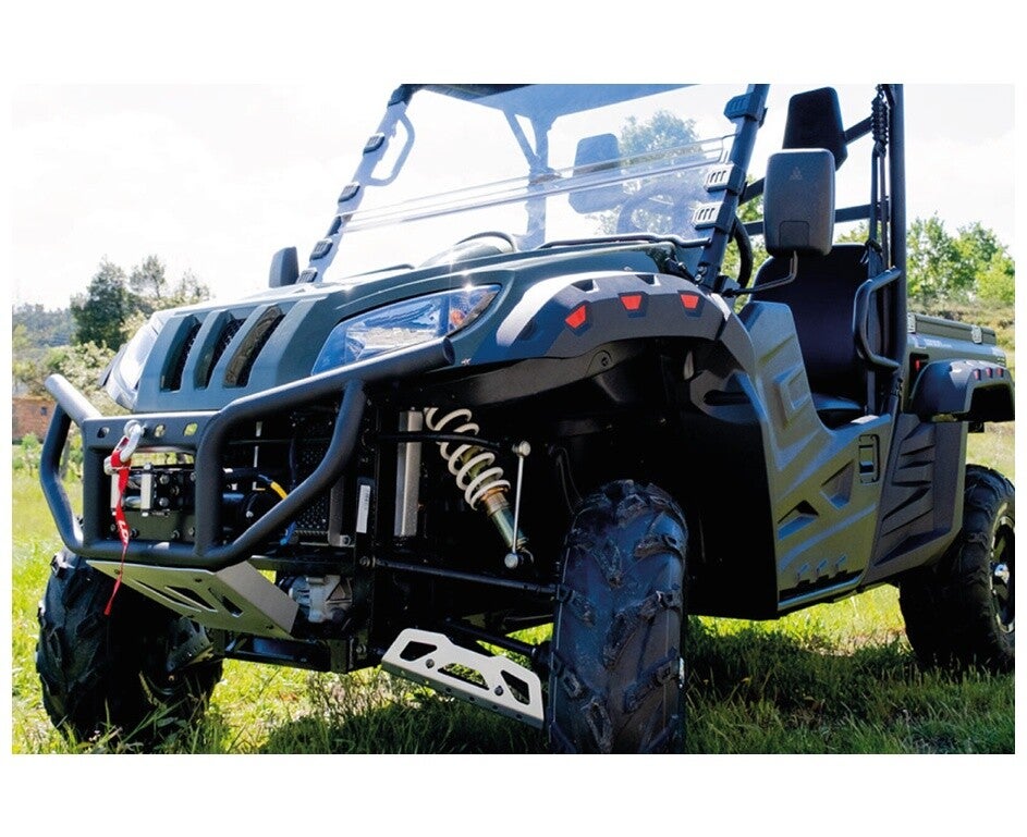 Die Ausstattung lässt keine Wünsche offen: elektrische Servolenkung (EPS) sorgt für komfortable Kontrolle, hydraulische Scheibenbremsen vorne und hinten garantieren sicheres Bremsverhalten. Der U-Wolf 700 bietet ausserdem eine grosszügige Bodenfreiheit, Independent‑Federung und eine bergtaugliche Zuladung.