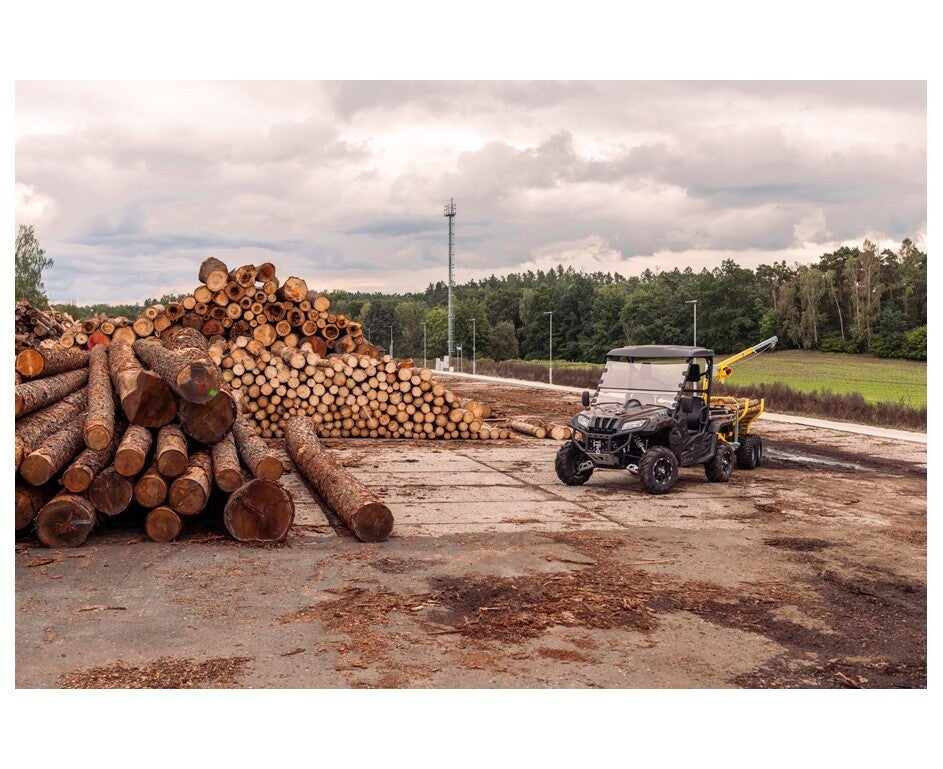 Mit der bereits serienmässigen elektrischen Seilwinde lassen sich problemlos Baumstämme und vieles mehr ziehen. Sehr praktisch ist, dass man die Seilwinde auch bedienen kann ohne im Fahrzeug sitzen zu müssen.