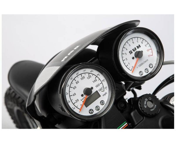 Angetrieben von moderner Technik, einem analogen Tacho und einer Upside-Down Federung ist die Six Days ein Motorrad welche jede Aufgabe auf sich nimmt und überall den Retro-Charme versprüht.