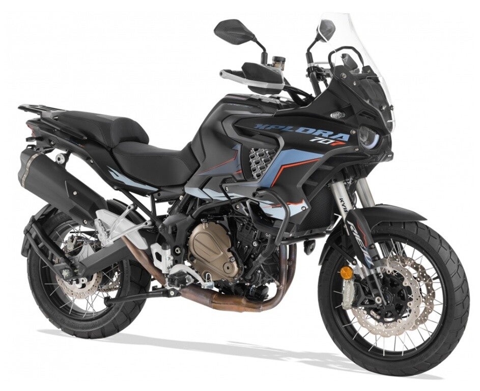 Ihr kraftvoller 700-ccm-4-Takt-Zweizylindermotor, der gemäß der EURO 5+ Norm homologiert ist, liefert dank seiner 70 PS Leistung und einem maximalen Drehmoment von 70Nm eine schnelle und präzise Reaktion in jeder Situation. Ausgestattet mit einstellbaren KYB-Federungen, leistungsstarken Brembo-Bremsen und einem abschaltbaren Bosch Zweikanal-ABS-System, garantiert sie eine sichere und effiziente Fahrt auf jeder Oberfläche. Die Xplora 707 ist für die anspruchsvollsten Routen konzipiert und verfügt über 19-Zoll-Aluminium-Speichenräder vorne und 17-Zoll hinten, montiert auf schlauchlosen Reifen, die hervorragenden Grip abseits der Straße bieten und totale Vielseitigkeit mit Sicherheit, Kontrolle und Leistung bieten.