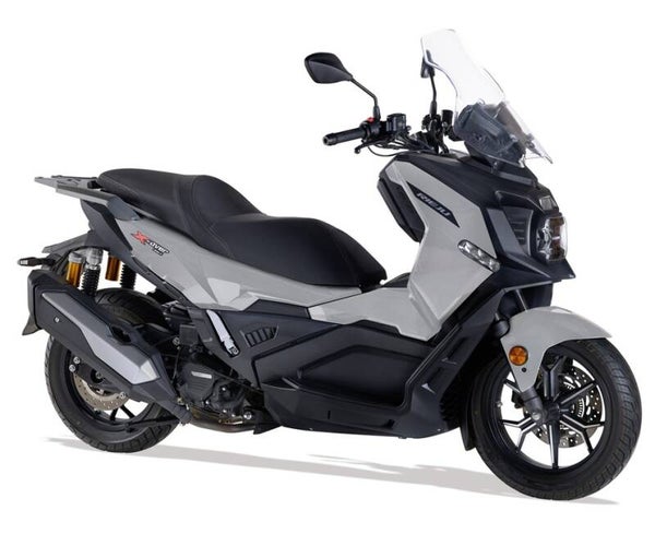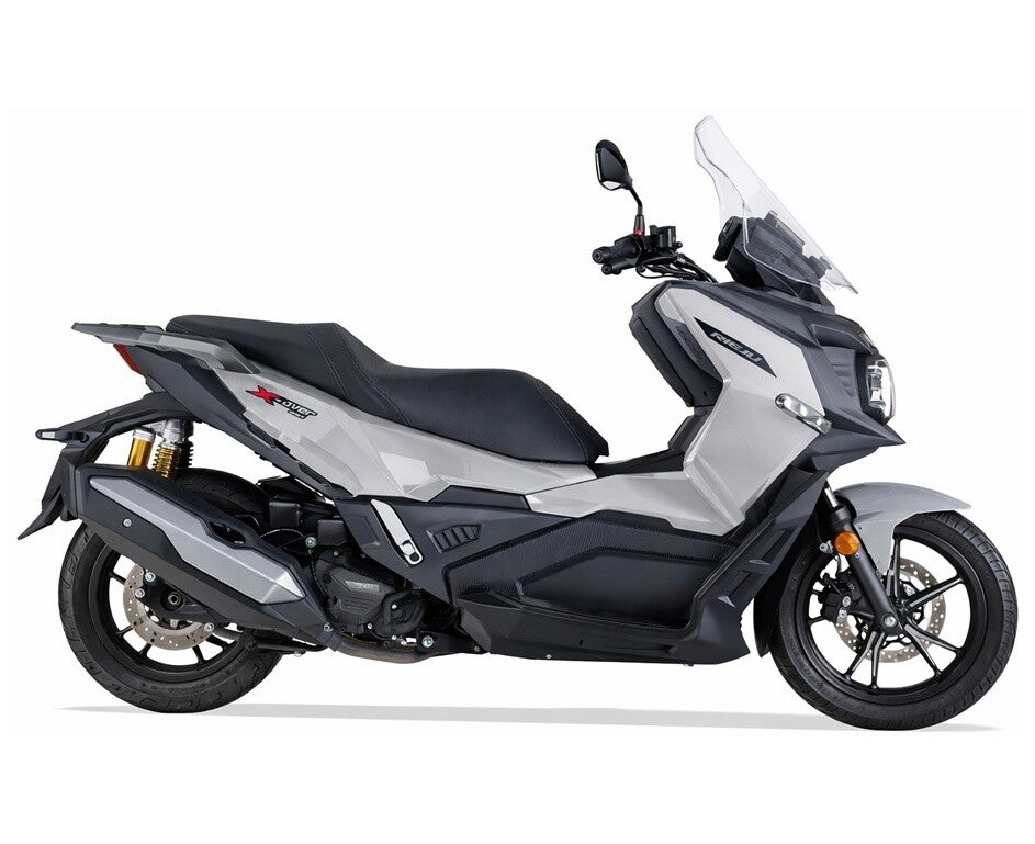 Optisch setzt die X-OVER 357 auf eine markante, moderne Linienführung mit Crossover-Anleihen: große Räder, erhöhte Front, Schutzkomponenten und Adventure-Details vermitteln Robustheit und Freiheit. Gleichzeitig bleibt die Silhouette kompakt und elegant genug für den urbanen Einsatz. Das Ergebnis ist ein Scooter mit starker Persönlichkeit, der bewusst aus dem klassischen Designrahmen der 300-ccm-Klasse ausbricht.