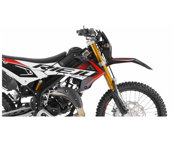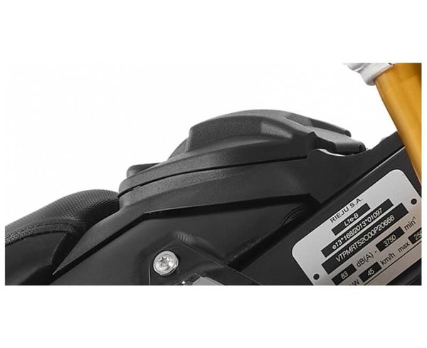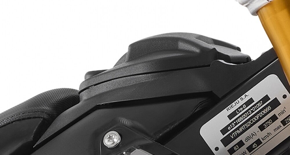 Goldene, umgekehrte Ollé R16V-Gabel mit hoher Leistung, die deinem Motorrad einen radikaleren Touch verleiht. Gas-Mono-Shock-Dämpfer Ollé mit separatem Behälter und PRS-System (Progressive Rate Suspension) bietet eine optimale Federung unter einer Vielzahl von Fahrbedingungen.