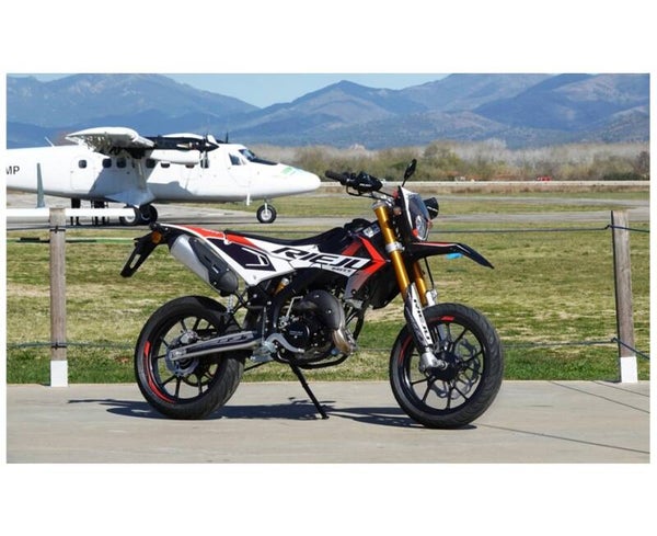 Qualität, Effizienz und extremer Spaß. So definiert die MRT 50 SM PRO den Beginn einer neuen Ära. Ein Modell, das durch das neue Design seiner Verkleidung ästhetisch unverwechselbar ist und auf den Markt kommt, um den Motorliebhabern zu zeigen, dass sein Erbe lebendiger denn je ist. Mit einem klaren Fokus auf Innovation und Fahrerlebnis wird der neue König der 50cc Supermotards von einem flüssigkeitsgekühlten Minarelli 2T NG Motor angetrieben und ist mit einer beeindruckenden 40mm Upside-Down-Gabel ausgestattet.