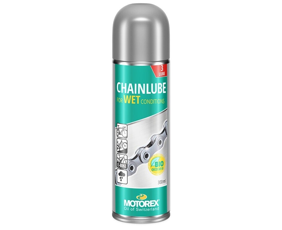 MOTOREX CHAINLUBE FOR WET CONDITIONS SPRAY eignet sich ideal zur Kettenschmierung bei Feuchtigkeit und Nässe.